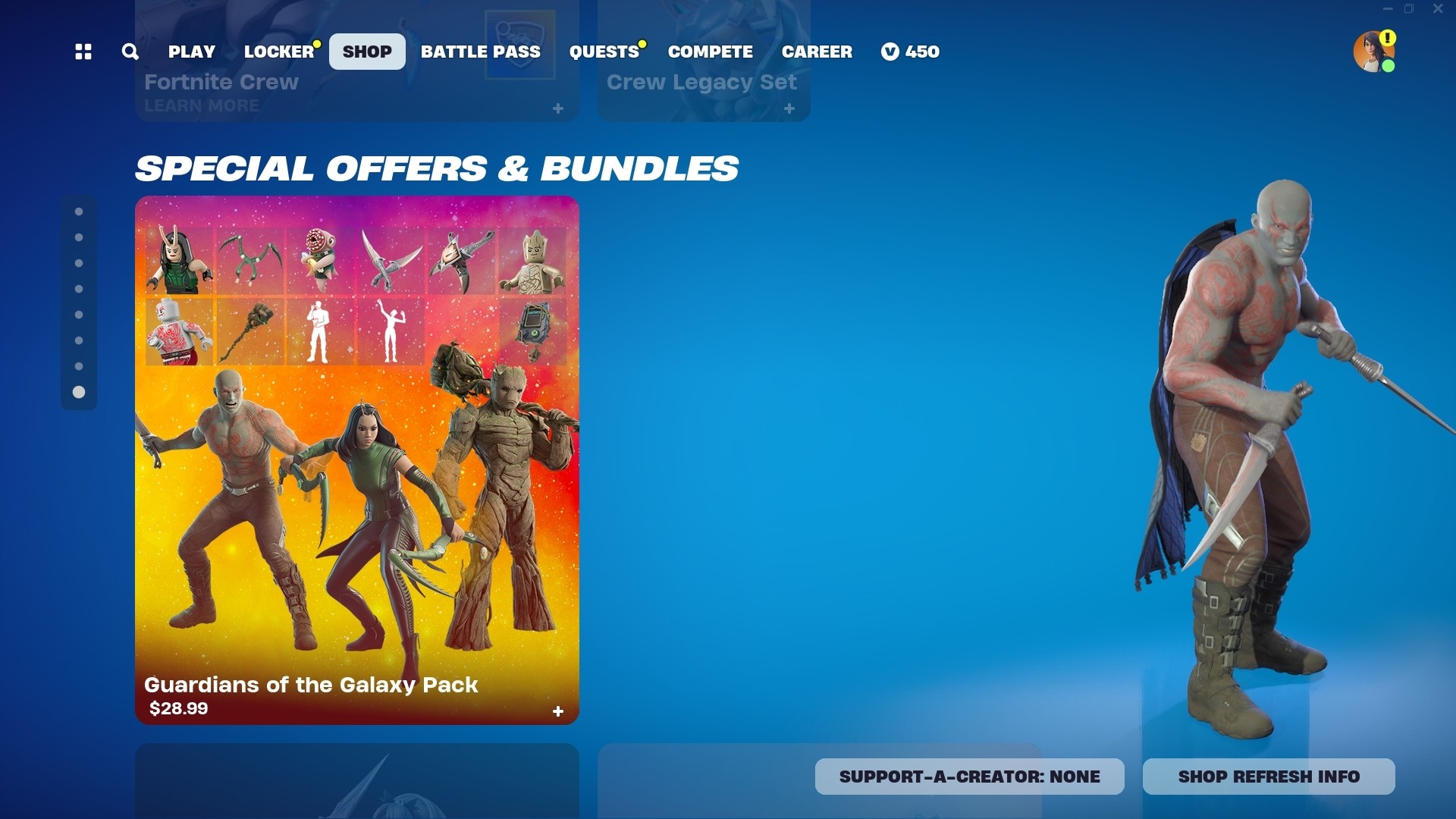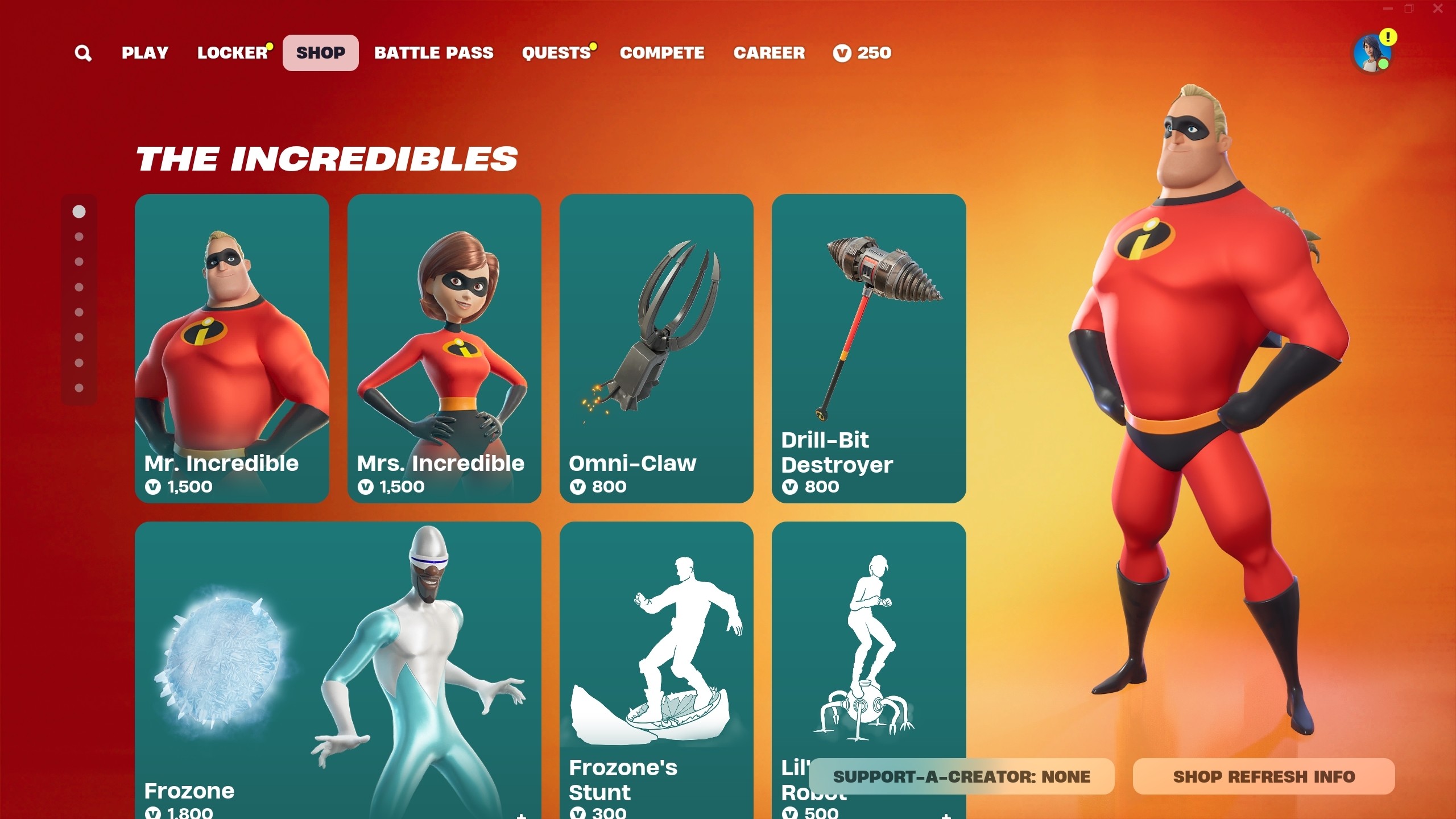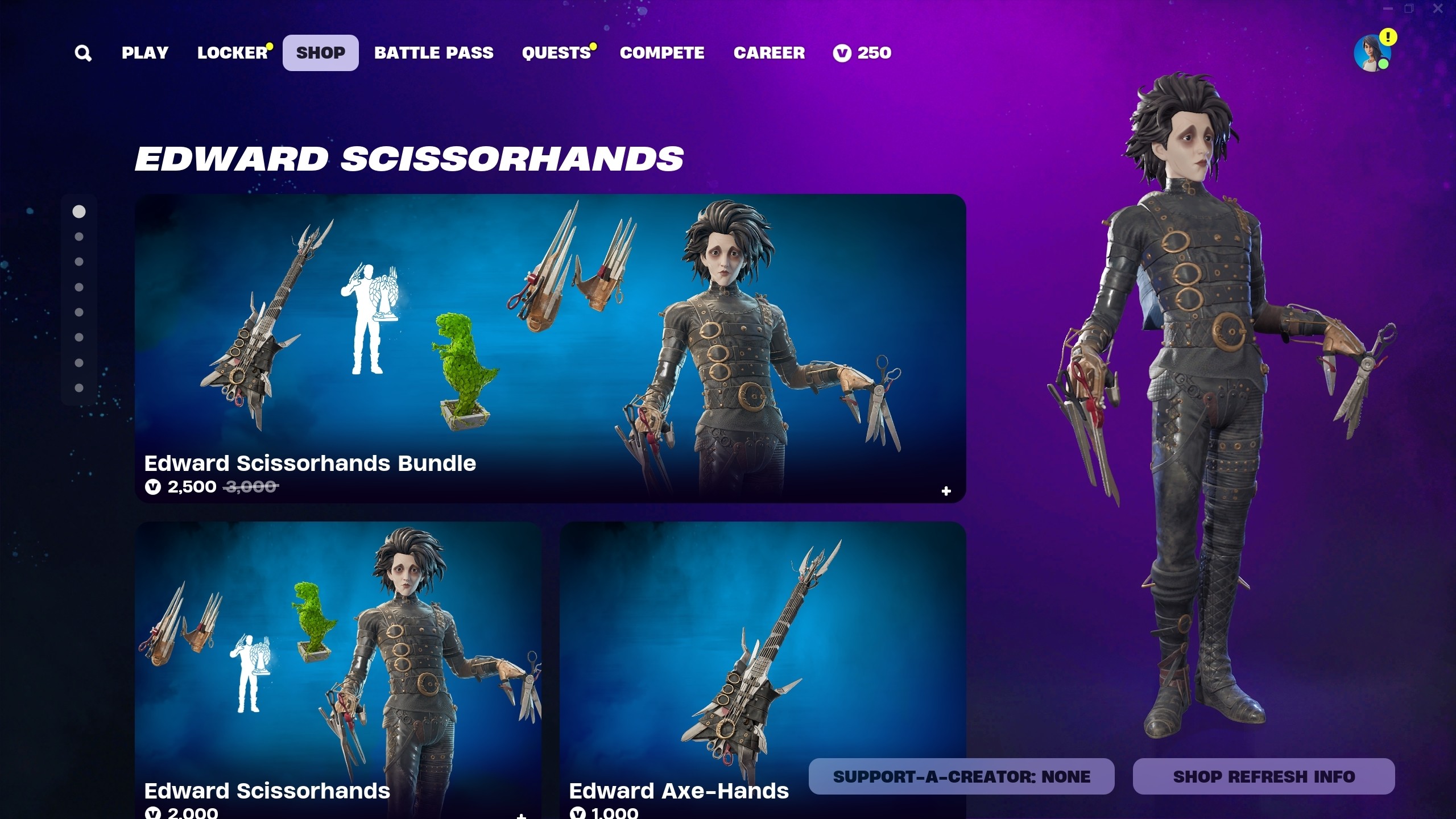 I created and implemented in-store billboards like the Clix bundle shown. Some were built entirely from scratch. Others were edited and polished using existing assets. These billboards promote featured content in Fortnite’s Item Store. I designed layouts, edited skins, icons, and backgrounds. I assembled full bundles and made sure everything followed Epic’s visual style. I used Unreal Engine and Perforce to get them live. Each one was tested, reviewed, and delivered on tight daily deadlines.